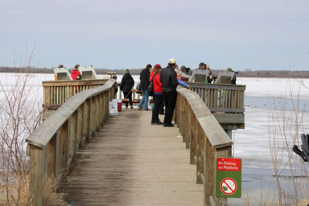 The platform is situated within Lois Hole Centennial Provincial Park, a site of global significance designated as an Important Bird and Biodiversity Area (IBA). Serving as a critical stopover for over 235 species, the park honours the legacy of the late Lois Hole—Alberta’s 15th Lieutenant Governor, a beloved gardener and a fierce advocate for the environment. Her namesake park protects the fragile shoreline of Big Lake, ensuring this "green lung" remains a sanctuary for wildlife. To reach the viewing platform directly, the most convenient access is via the Lois Hole Centennial Provincial Park parking lot at the intersection of Ray Gibbon Drive and LeClair Way, followed by a short walk along the Boardwalk Trail. Alternatively, visitors can park at Rotary Park in Riel Recreation Park and enjoy a longer, scenic walk along the Red Willow Trail System to reach the lake.