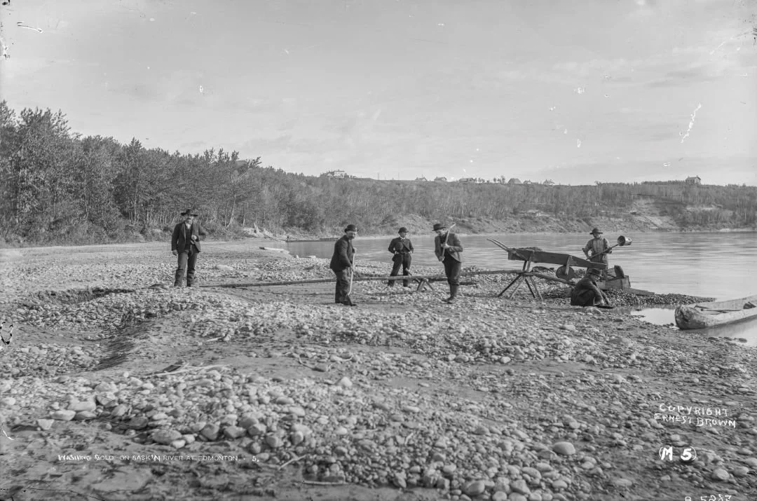 In 1867, 175 prospectors, known as the 'Overlanders', left Eastern Canada passing through Edmonton on their way to the Cariboo gold fields. About a third stayed in Edmonton to try their luck in the Fort Edmonton area and settled on Miner's Flat. Prospectors set up their tents and sluices in the area in the hopes of finding gold in the silt banks along the North Saskatchewan River.