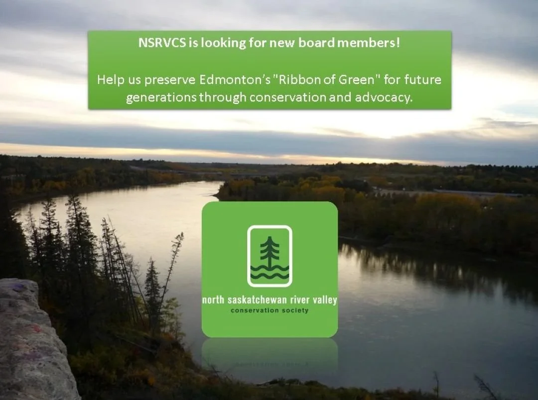In preparation for our Annual General Meeting in March 2026, the North Saskatchewan River Valley Conservation Society invites you to be involved with a dynamic organization seeking to preserve Edmonton’s ribbon of green for future generations. If you are interested in being nominated to the Board of Directors, please contact us at nsrivervalley@gmail.com