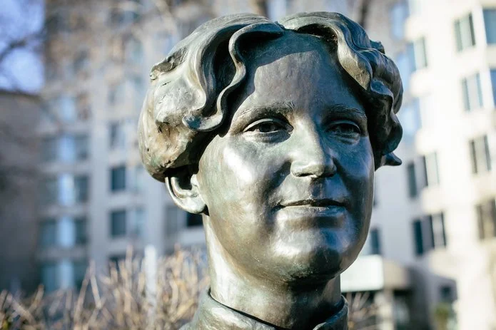 Bronze Bust of Nellie McClung by Danek Mozdzenski, Victoria Promenade. Girl named Shirl Photography https://www.edmontonpublicart.ca/#!/details/246